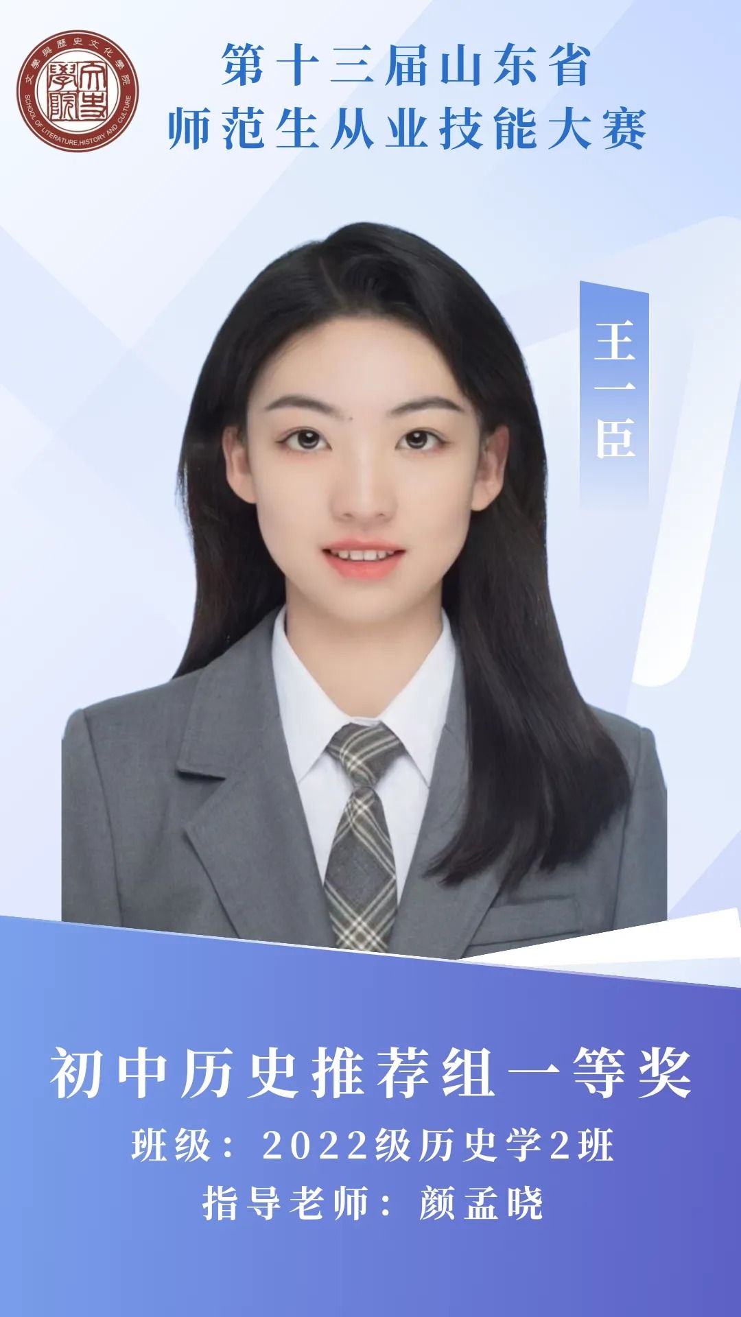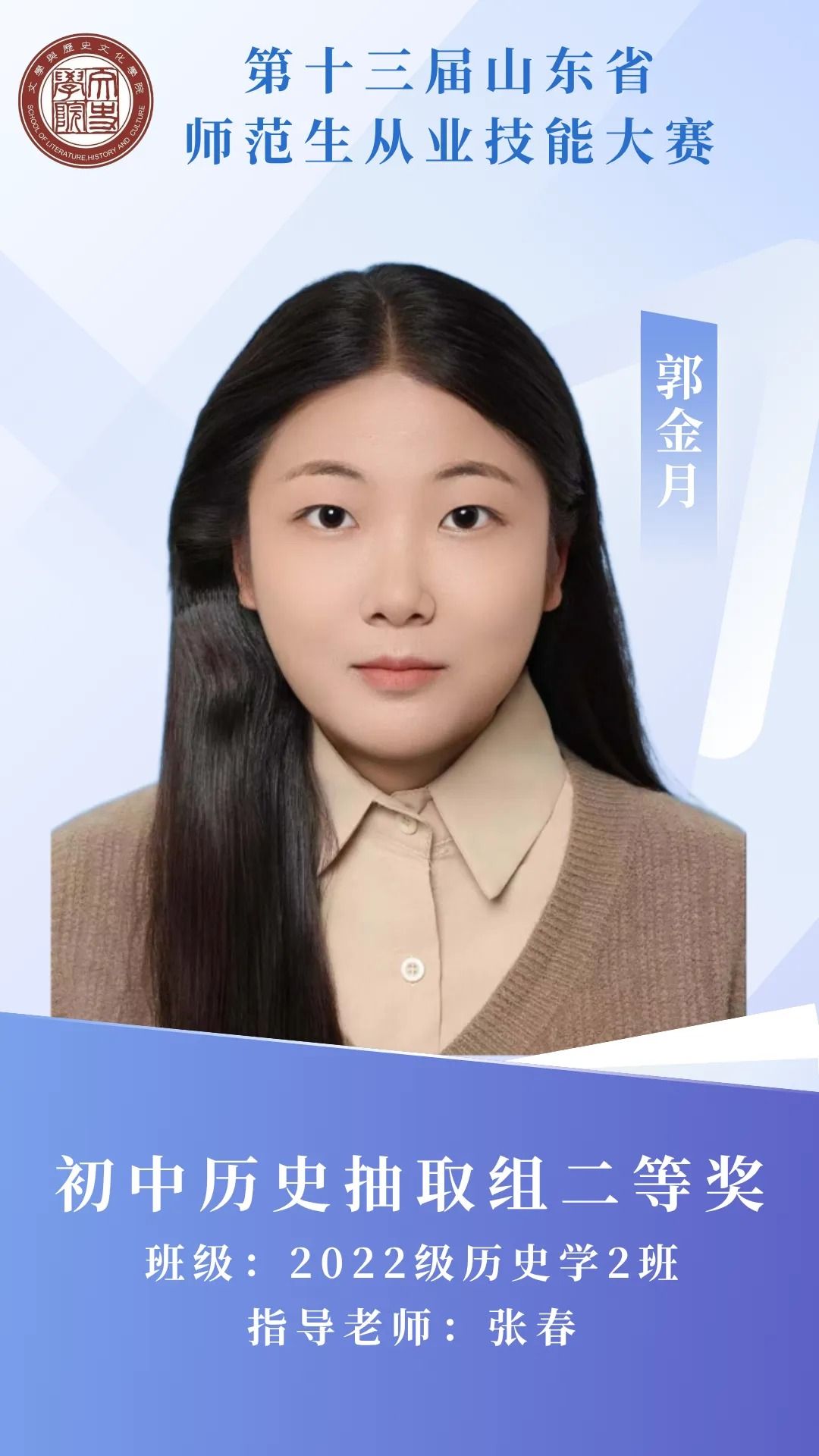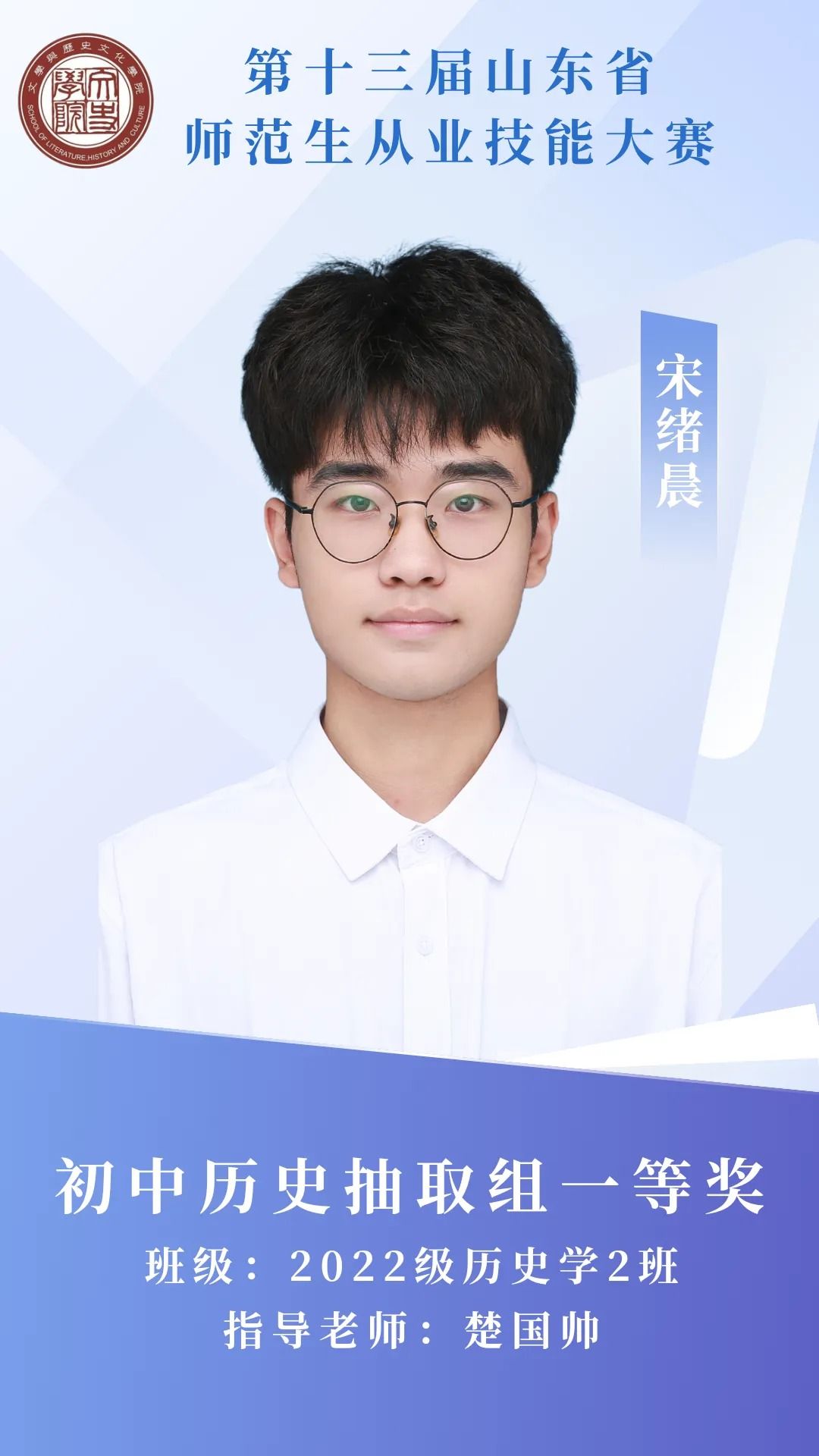 赛场砺剑,杏坛筑光;笔耕不辍,终绽芳华。那些反复打磨教案的日夜,那些模拟授课时的专注投入,都成为成长路上的注脚。热烈祝贺我院11名学子在第十三届山东省师范生从业技能大赛中突围而出,用实力捧回荣誉!今天,就让我们共同见证他们的闪耀时刻 。