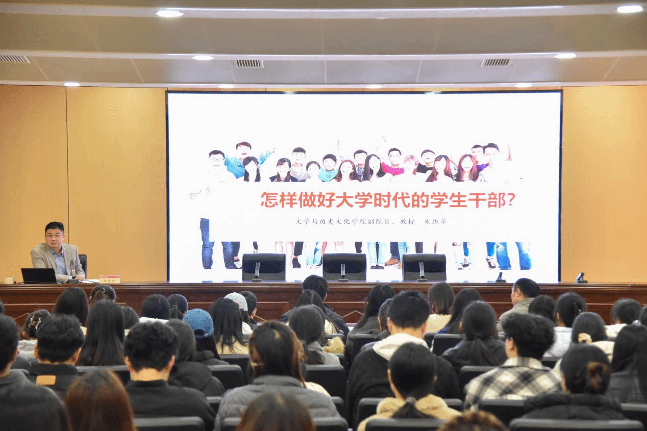 朱振华围绕“怎样发挥好学生骨干的模范带头作用”作专题培训。在交流中,他重点强调了学生骨干带头引领学风的重要性,指出优良学风是立身之本、成才之本。以此为基础和前提,激励学生骨干在引领学风建设的前提下,不断增强个人的核心素养、服务能力和过硬本领。他希望全体学生骨干以身作则,不断以学风引领树标杆,以实干作风聚合力,争做同学表率、班级先锋。