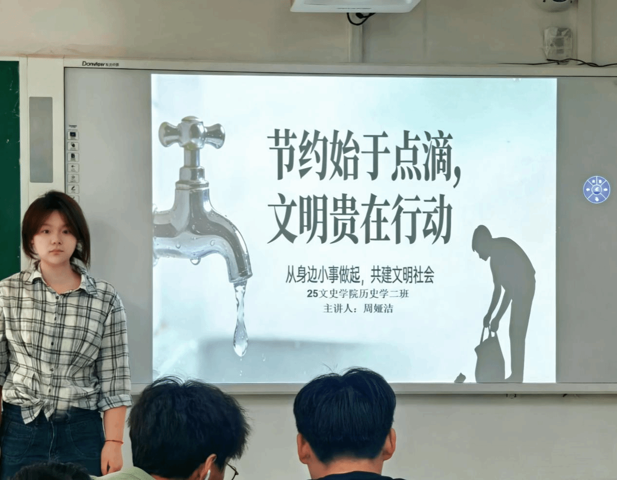 为倡导学院学生以行动践行文明、以点滴涵养初心,3月26日,太阳集团tyc539macau组织了“节约始于点滴,文明贵在行动”政治自习活动,鼓励同学们将节约意识融入日常、化作经常。