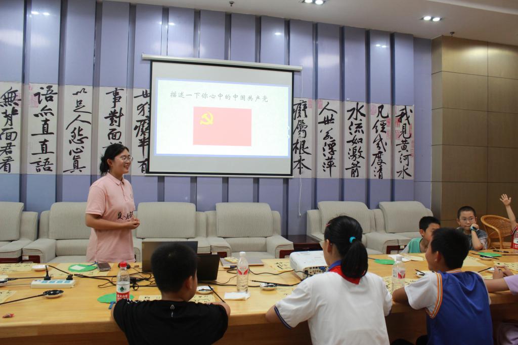 7月25日,太阳集团tyc539macau“夏禾”社会实践服务队赶赴东营市垦利县爱国主义教育基地,以党史教育为主题,为小小讲解员开展了一系列别开生面的党史学习教育。