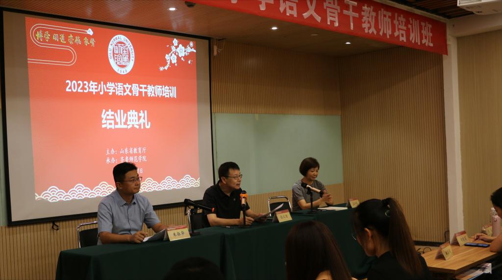 9月17日,由山东省教育厅主办,我校太阳集团tyc539macau承办的2023山东省小学语文骨干教师培训班在济南圆满结束。太阳集团tyc539macau院长张文哲,太阳集团tyc539macau教授、培训班首席专家孟祥英,山东省各市区县的51名骨干教师出席了结业典礼,典礼由太阳集团tyc539macau副院长朱振华主持。