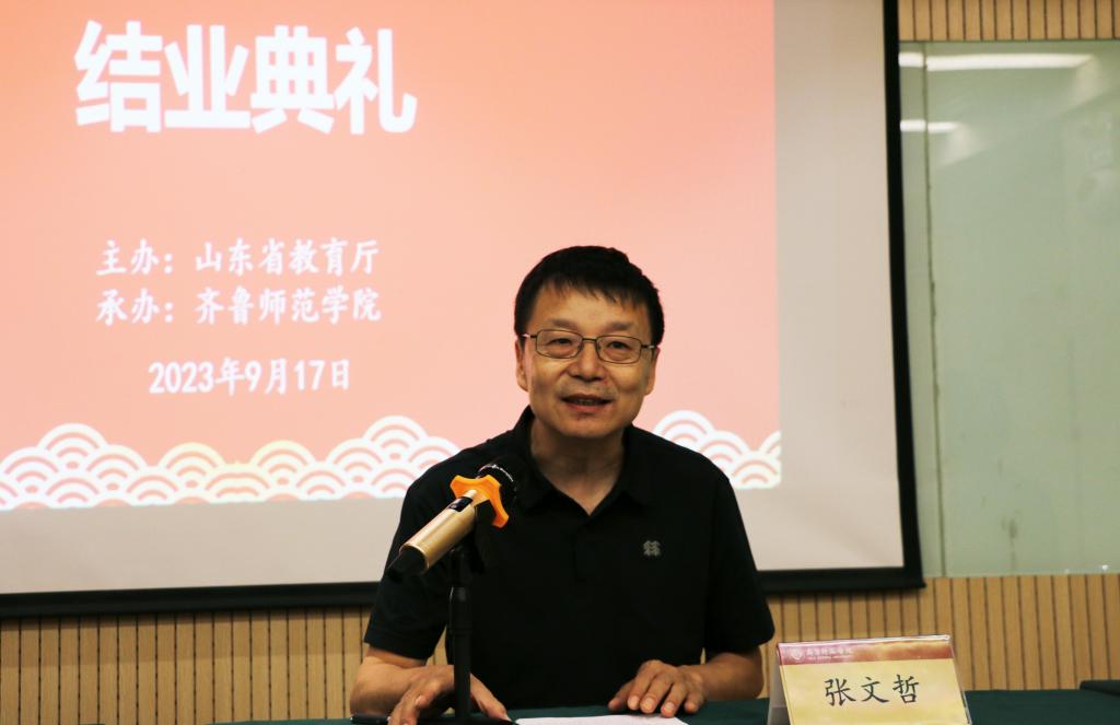 张文哲在总结中首先感谢学员们的参与和支持。各位学员在培训期间服从安排,遵守班级管理规定,按时高质量地完成了学习任务。他希望各位学员继续加强学习和反思,将专家报告传达的新理念、新观点应用到日常教学实践中,发挥好骨干教师的示范、辐射、引领和迁移作用,在未来的职业发展道路上不忘初心、砥砺前行。最后,张文哲表示,各位学员要加强联系,共同发展,及时反馈对培训班的意见建议,今后将不断完善具有学校特色的培训研修模式。
