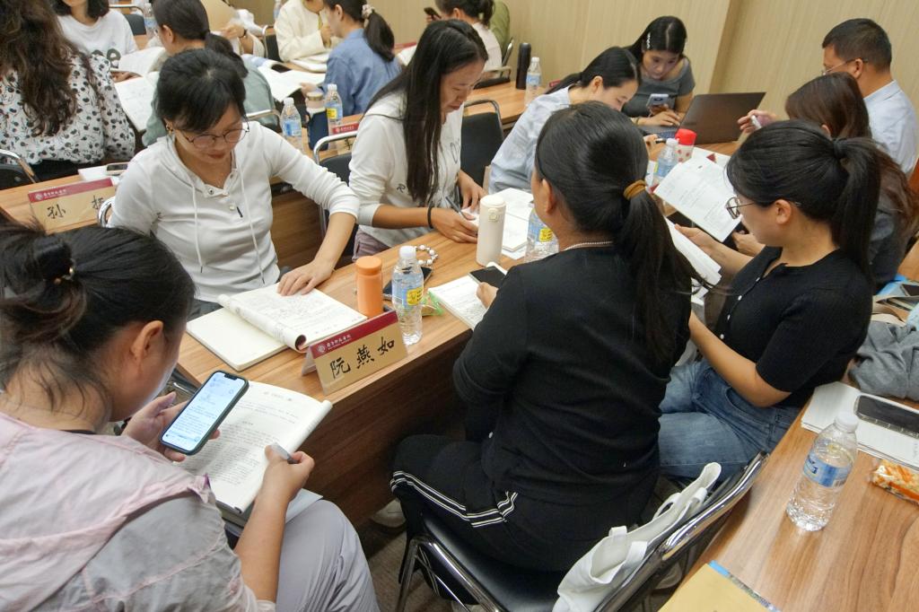 学员磨课环节,各组成员围坐在一起,围绕教学设计的达成、优化建言献策。大家团结一心、各抒己见、群策群力,在智慧的碰撞和融合中不断提升语文教学的能力水平。