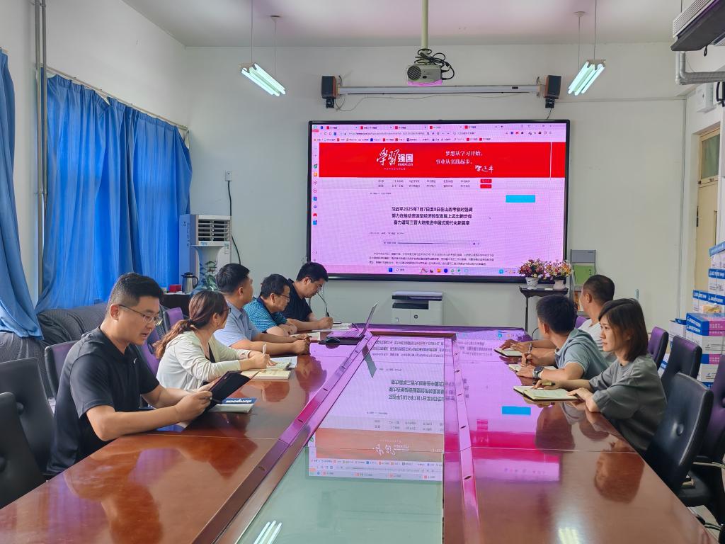 2025年7月11日下午,太阳集团tyc539macau党委理论学习中心组开展第9次集体学习,会议由学院党委书记胡义忠主持,党委理论学习中心组成员集中学习,全体科级干部列席旁听。