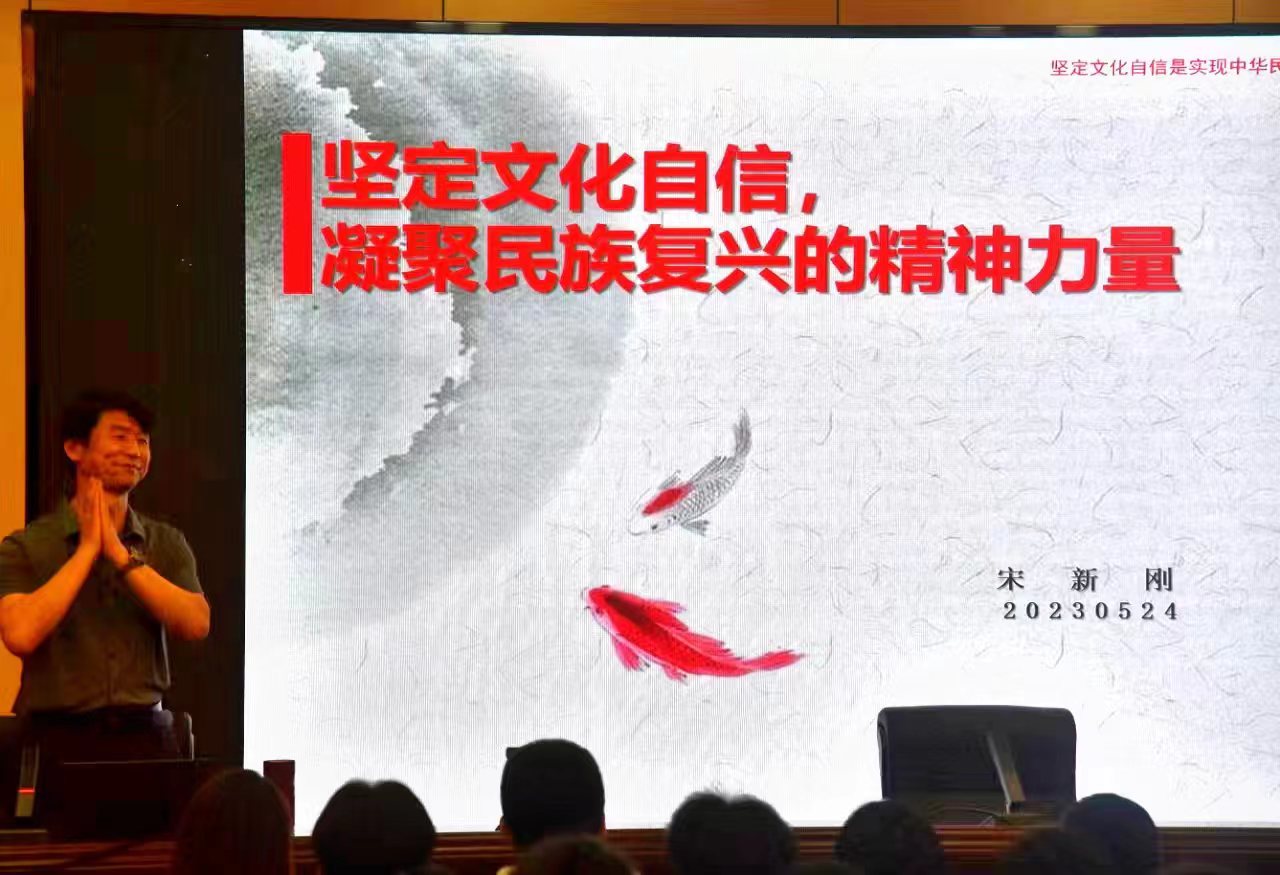 “广大青年要坚定不移听党话、跟党走,怀抱梦想又脚踏实地,敢想敢为又善作善成,立志做有理想、敢担当、能吃苦、肯奋斗的新时代好青年,让青春在全面建设社会主义现代化国家的火热实践中绽放绚丽之花。”党课讲授过程中,宋新刚首先以习近平总书记在党的二十大报告中对于新时代青年的殷切期望和嘱托导入专题党课主题。然后结合自身阅历经验、学校历史发展以及先进人物和典型事例,讲述了文化自信是最基本、最深沉、最持久的力量,中华优秀传统文化是坚定文化自信的深厚基础,中国特色社会主义伟大实践是坚定文化自信的不竭源泉和坚定文化自信是青年建设文化强国的动力之源四个部分。