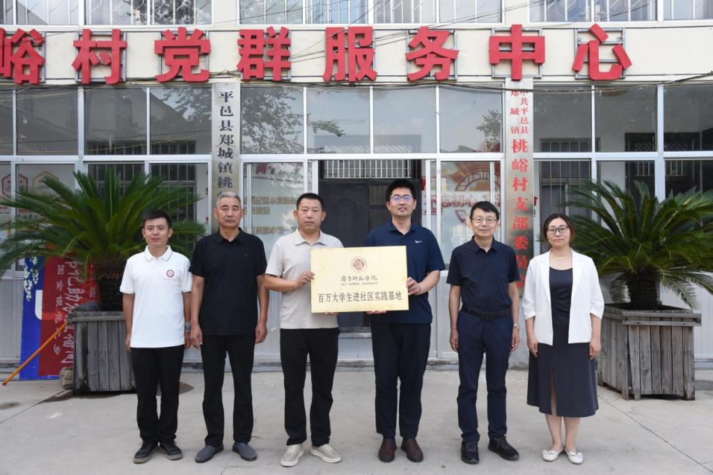 为了持续深入贯彻落实共青团山东省委关于“百万大学生进社区”的部署要求,引导青年学子在基层实践中锤炼过硬本领、奉献青春力量,太阳集团tyc539macau在总结经验、深化活动的基础上,7月14日,组织师生赴临沂市桃峪村,举行“百万大学生进社区”实践基地揭牌仪式并开展实践活动。桃峪村党支部书记汪明,学院党委书记胡义忠、院长张文哲、党委副书记焦丽鹃、指导老师朱迪康及学生代表参加活动。