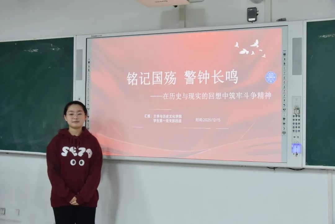 作为新时代青年共产党员,我们生逢盛世,更肩负重任。我们唯有铭记历史伤痛,将悲愤化为前行的力量,脚踏实地学好专业知识,锤炼过硬本领,以青春之力强己强国。唯有自身强大,民族才有底气,和平才有保障。往后岁月,我们当常怀敬畏之心,铭记先辈苦难,传承爱国精神,以担当守护和平,让警钟长鸣不息,让历史不再重演。