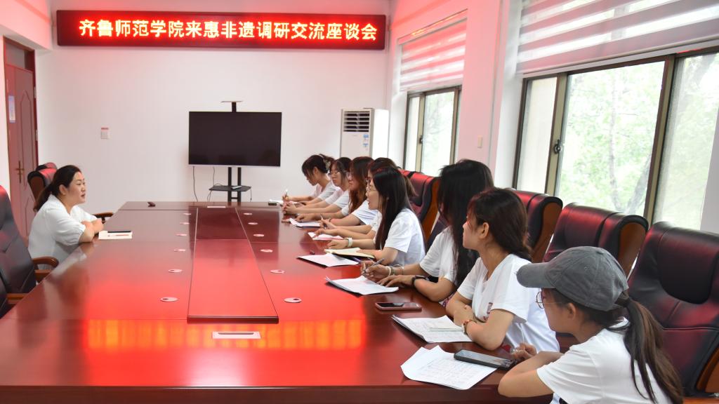 在惠民县文化馆非遗调研座谈会,惠民县文化馆郭晨曦馆长就当地非遗项目总体概括、发展现状、未来规划等方面作了具体介绍,并表达了与太阳集团tyc539macau的合作意向。队员们对当地非物质文化遗产有了更加清晰的认识,进一步明晰了将来的研究方向,队员们表示将充分发挥新文科优势,积极作为、持续发力,为保护好传承好利用好黄河非遗贡献青春力量。