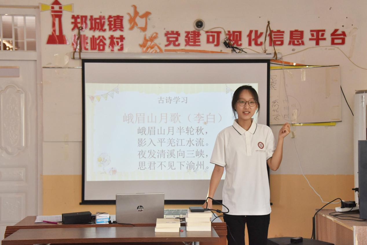 为了让孩子们在诗词中触摸韵律之美、在笔墨间涵养专注之心、在游戏里绽放纯真笑颜,7月16日,“乡童书韵”社会实践服务队在桃峪村继续开展支教活动,将经典诵读、规范书写与趣味互动融入课堂,为孩子们带来一堂兼具文化味与欢乐感的课程。