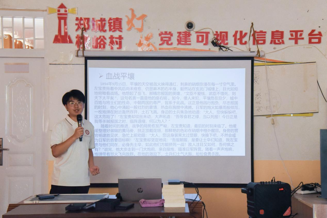 队员们为孩子们讲述临沂本地英雄人物的故事。从“智计超群”的诸葛亮,讲述他“草船借箭”、“空城计”中展现的智慧与谋略;到“抗日英雄”左宝贵,还原他在甲午战争中浴血奋战、坚守阵地的英勇场景;再到“时代楷模”刘嘉坤,分享他带领村民开山种果、脱贫致富的实干经历。孩子们听得聚精会神,听到诸葛亮的妙计拍手称奇,讲到左宝贵的牺牲眼含敬佩,聊起刘嘉坤的事迹满眼向往。队员们结合故事解读英雄精神,让孩子们在熟悉的地域英雄故事里,感受智慧、勇敢与担当的力量。