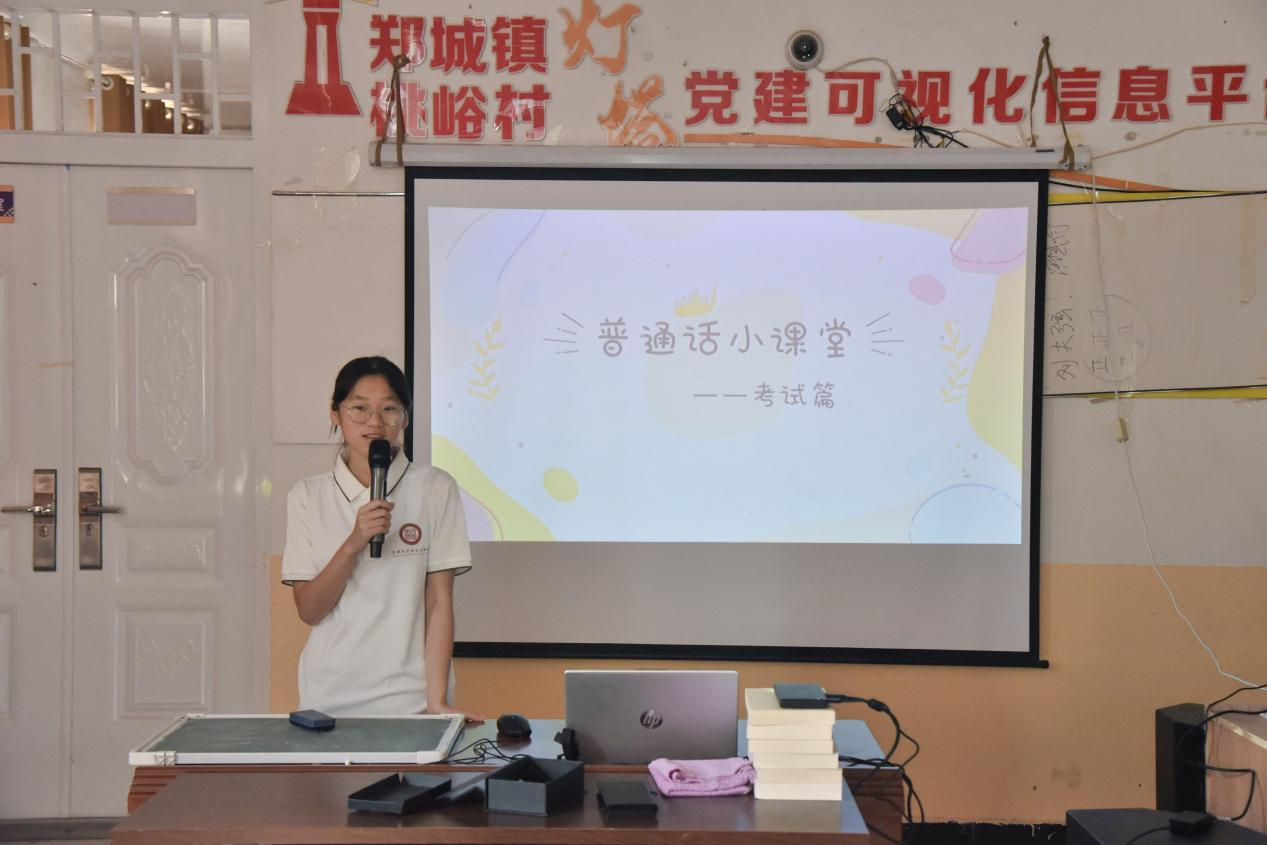 普通话课上,队员们带着孩子们开展普通话发音练习,将推广普通话的理念融入每一个教学环节。孩子们跟着队员大声跟读,模仿着正确口型,在一遍遍的朗读和纠正中,不仅渐渐掌握准确发音,更在实践中理解推广普通话对拓宽视野、顺畅沟通的重要性,感受着普通话作为通用语言的桥梁作用,眼神里满是认真与期待。