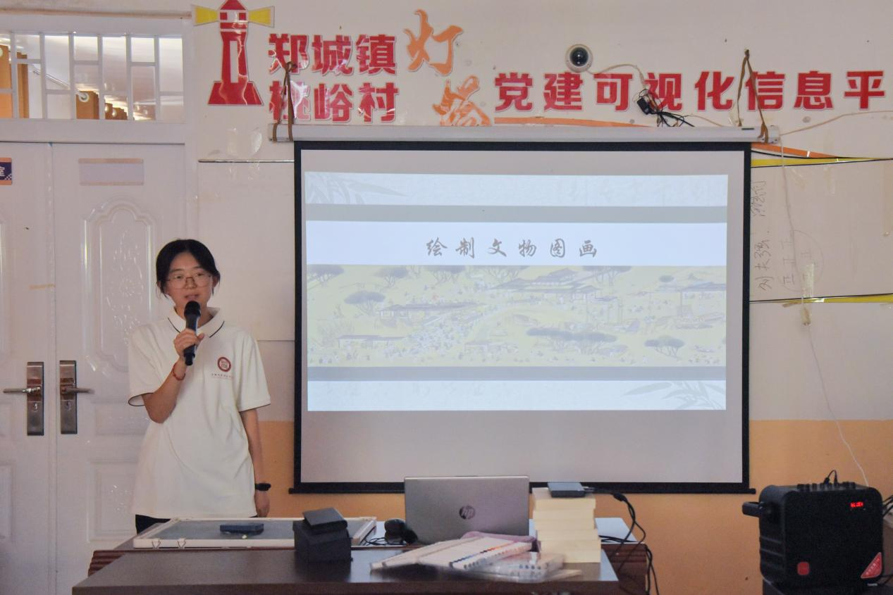 为了让孩子们在标准发音中体会普通话之韵、在英雄故事里传承沂蒙精神、在文物绘画中触摸历史温度,7月19日,“乡童书韵”社会实践服务队在桃峪村继续开展支教活动。
