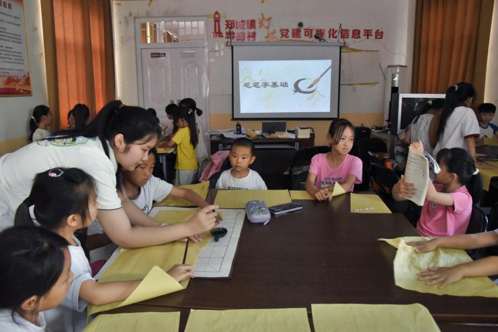 为了让孩子们在安全课堂上筑牢防护意识、在笔墨挥洒中深耕汉字之美、在漂流瓶里寄托纯真心愿,7月20日,“乡童书韵”社会实践服务队在桃峪村开展了最后一天的支教活动,重点落实“三字一话”推广中毛笔字书写的传承。