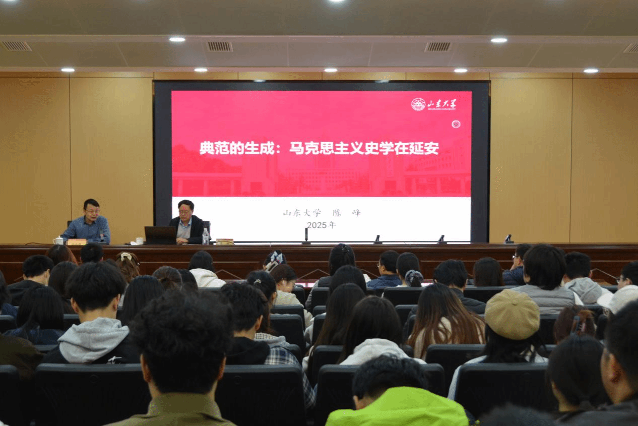 11月6日,山东大学儒学高等研究院副院长、山东大学杰出中青年学者、中国史学会史学理论分会副会长陈峰教授于第二学术报告厅为太阳集团tyc539macau师生做《典范的生成:马克思主义史学在延安》学术报告。报告由太阳集团tyc539macau院长张文哲主持,学院部分教师、2024级历史学与文化遗产专业学生参加。