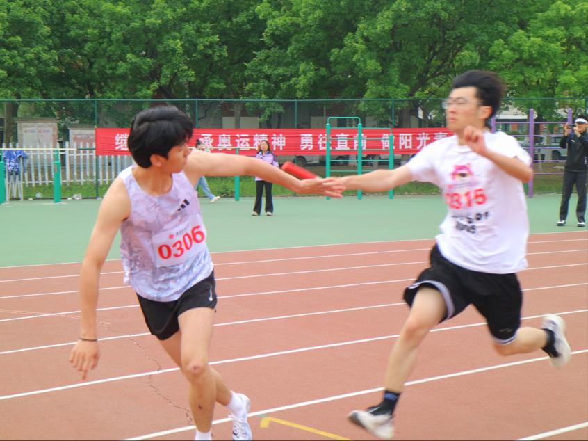 速度彰显青春活力,师生4×100米接力中,学院教师刘冠群、朱迪康与两位同学共同完成了比赛。比赛过程中,师生展现出了强烈的团队合作精神,他们互相鼓励、密切配合。比赛磨砺了他们的意识品质,也让他们更加珍惜师生间的默契与信任。
