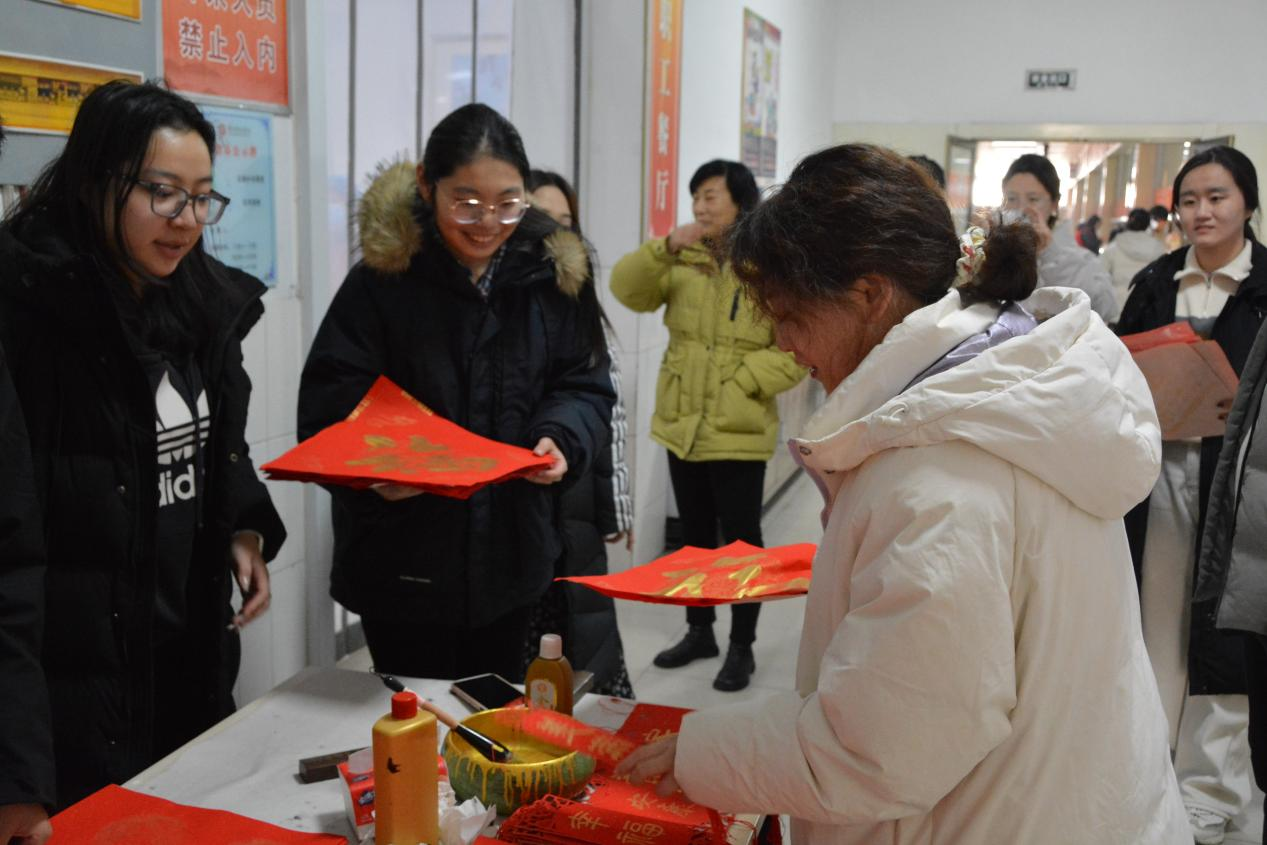 本次共送出“福”字500多个、春联100多幅。鲜红春联映笑脸,欢声笑语伴墨香,祥和之气盈满校园的每一寸角落。此次活动进一步激发了全校师生对传统文化的热爱与传承意识,增强了校园的凝聚力与向心力,既丰富了校园文化生活,又为构建和谐美好的校园文化氛围注入了新的活力,为推动我校文化事业的繁荣发展贡献了积极力量。