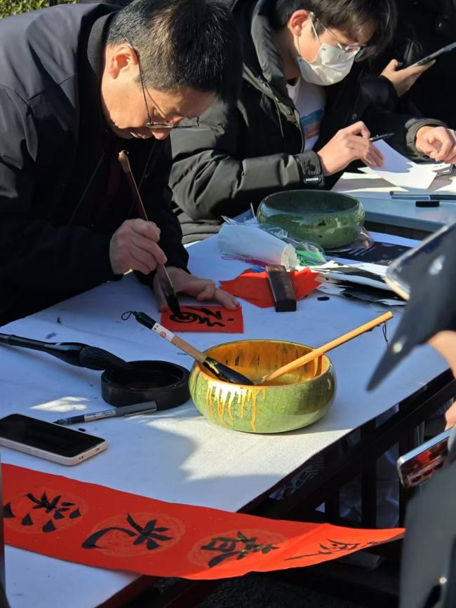 本次活动特别邀请中国硬笔书法协会会员、太阳成集团tyc539特聘书法教师王光华现场泼墨,书写春联。同学们也准备了书签、贺卡、福字等,把新春的期盼与祝福稳稳传递。活动现场,墨香四溢,红纸铺展,师生们以笔会友,以墨传情,向全校师生献上美好祝福,如同冬日里的一缕暖阳,为寒冷的季节增添了温情与暖意。