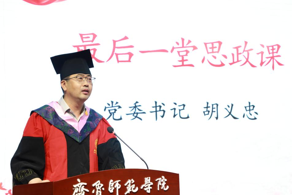 党委书记胡义忠为毕业生带来“最后一堂思政课”。他希望全体毕业生进一步树立正确世界观、人生观、价值观,做一个有理想、有道德、有文化、有温度的新时代青年;心中有小家、有大家、有国家,积极为社会发展做贡献;始终保持学习的态度,提高自己的综合素质;勇于担当、积极进取,为国家发展贡献自己的力量;珍惜时光、热爱生活,以乐观心态享受人生的美好。