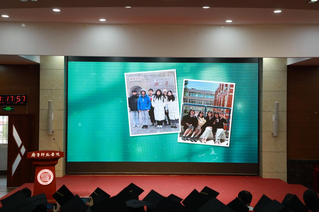 随后,大屏幕上播放的原创影像短片,将同学们在读期间的大学生活缓缓展开。视频中的每一个画面都承载着大家的青春记忆,也让全体同学感受到母校的关怀。