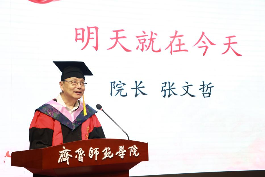 学院院长张文哲以“明天就在今天”为题向毕业生致辞。他说,真正的未来从不悬在天际,它正栖息在我们此刻的指间,微小的勤奋只要坚持下去也会成就非凡,微小的惰性日积月累亦会带来巨大的失败。他勉励同学们,胸中既要有对“大”的渴望,对“远方”的憧憬,又不能轻慢手中的“小”,忽视眼前的“近”。未来宏图的铺展,从来不是一蹴而就的狂想曲,而是由无数个踏实笃定的“今日”连缀而成的壮阔史诗。他希望每位同学带着母校赋予你们的厚重与温情,把每一个今天,都活成通向理想星辰的坚实台阶。