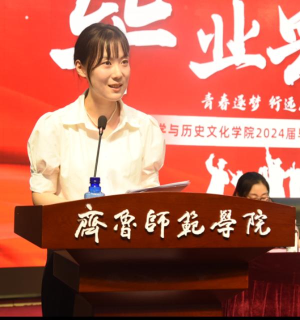 师恩厚重,母校情深。2020级学生王佳和、李佳政作为毕业生代表发言。她们分享了自己在学院的学习经历和成长感悟,共同表达了对学院领导、教师以及辅导员们的由衷感谢。她们表示,在未来的日子里将继续永葆初心,砥砺前行。