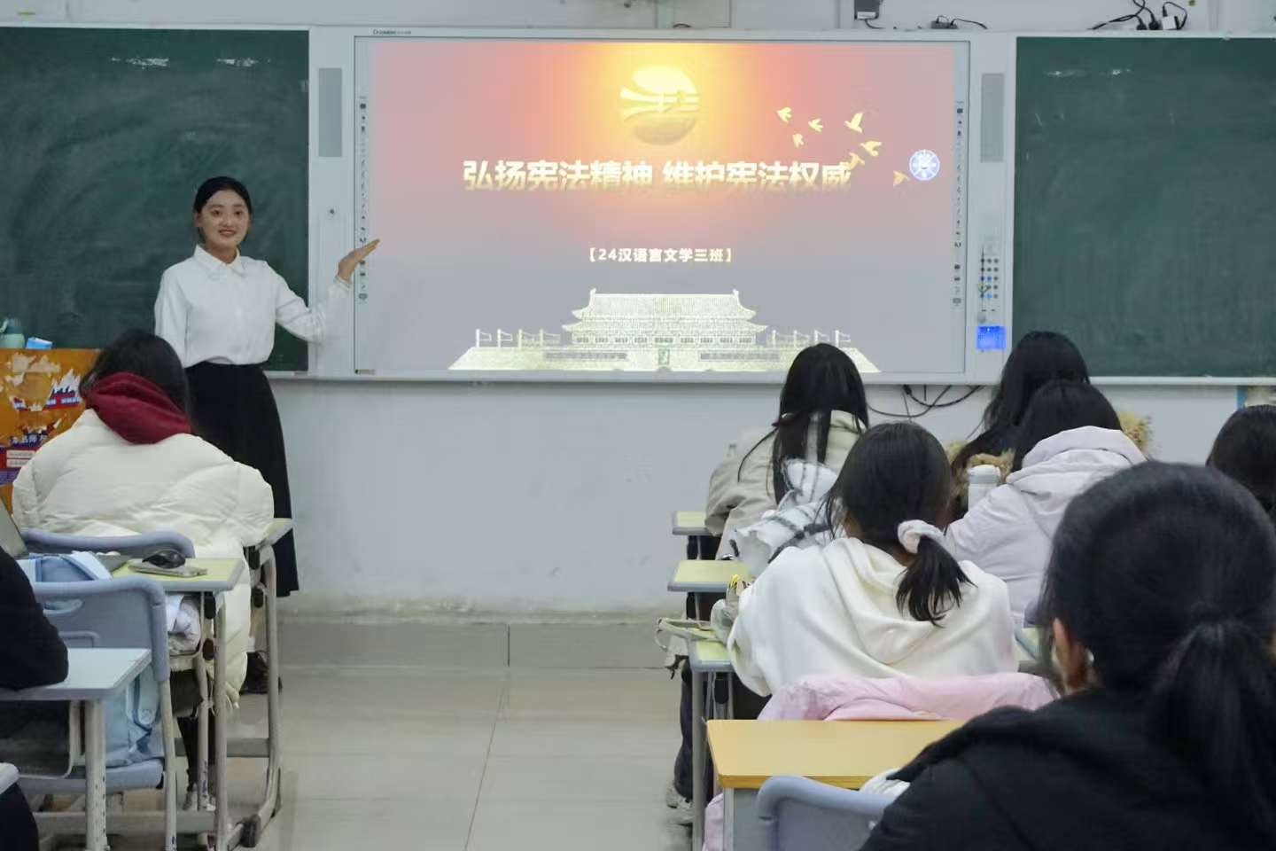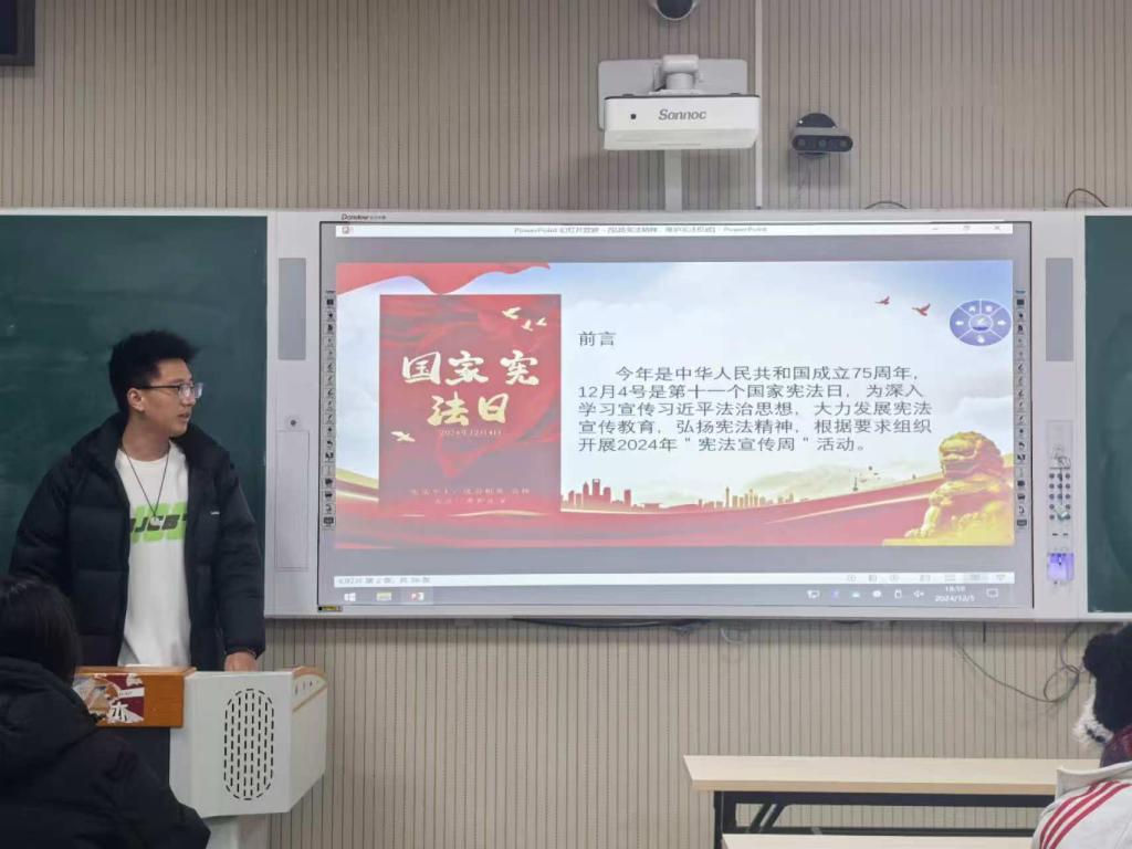 活动期间,各班级分别召开了宪法主题班会,重点讲解了习近平法治思想、新中国宪法的发展历程以及宪法的重要地位和作用等内容。通过引用具体事例讨论宪法的方式,提升了学生对宪法学习的兴趣和积极性。班会上,同学们齐声朗读《中华人民共和国宪法》的相关条款,展现出青年一代学习宪法精神、捍卫宪法权威的热情和决心。