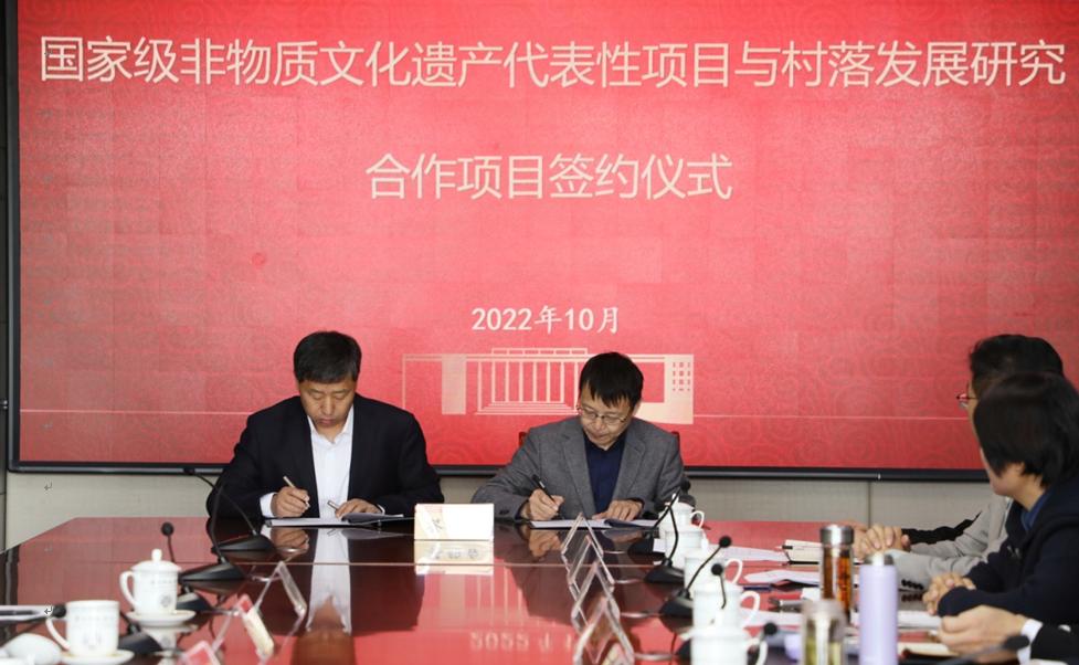 基于太阳成集团tyc539乡村调查研究学术团队前期的研究积累,文祖街道公共文化中心主任、三德范庄党委书记张江,历史文化学院院长张文哲分别代表双方签订“国家级非物质文化遗产代表性项目与村落发展研究合作协议”。双方确立以横向科研课题项目形式,以中国乡村调查研究中心朱振华博士学术团队为支撑,围绕国家级非物质文化遗产代表性项目和传统村落保护发展问题展开全面系统的研究工作。