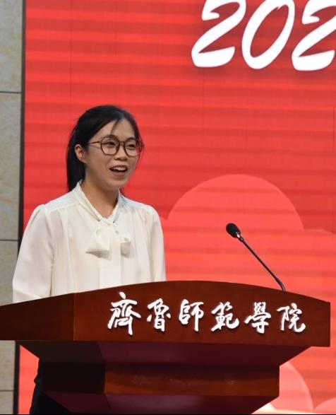 李汇老师作为教师代表发言,她对新生们寄予厚望:要珍惜时间与缘分,自为自成,学会阅读与思考,尽早确立学习目标,以“何惧流年匆匆,但求无负今日”的心态迎接未来的挑战。楚国帅老师作为班主任代表分享了自身成长的一些经验感悟,向新同学们提了三点建议,第一是坚持阅读与思考,第二是坚信可以通过自己的努力改变现状,第三是保持良好习惯,做个吃苦、会坚持、自律的靠谱人!