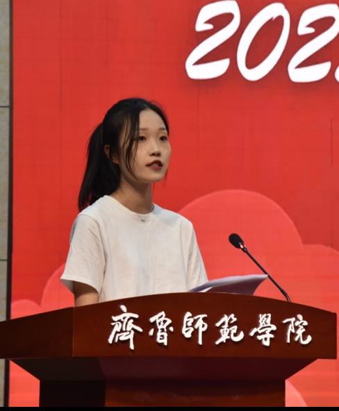 2020级学生李雅琳作为高年级学生代表发言。她分享了她在学院求知求学的心得,勉励自己及全体新生严于律己、勤于学习,不断成就自我、超越自我。2023级孙一斐代表全体新生发言,她表达了对未来学习生活的憧憬以及立志成才的决心,要把家国情怀融入青春奋斗,以奋斗不息的坚持书写未来的新篇章!