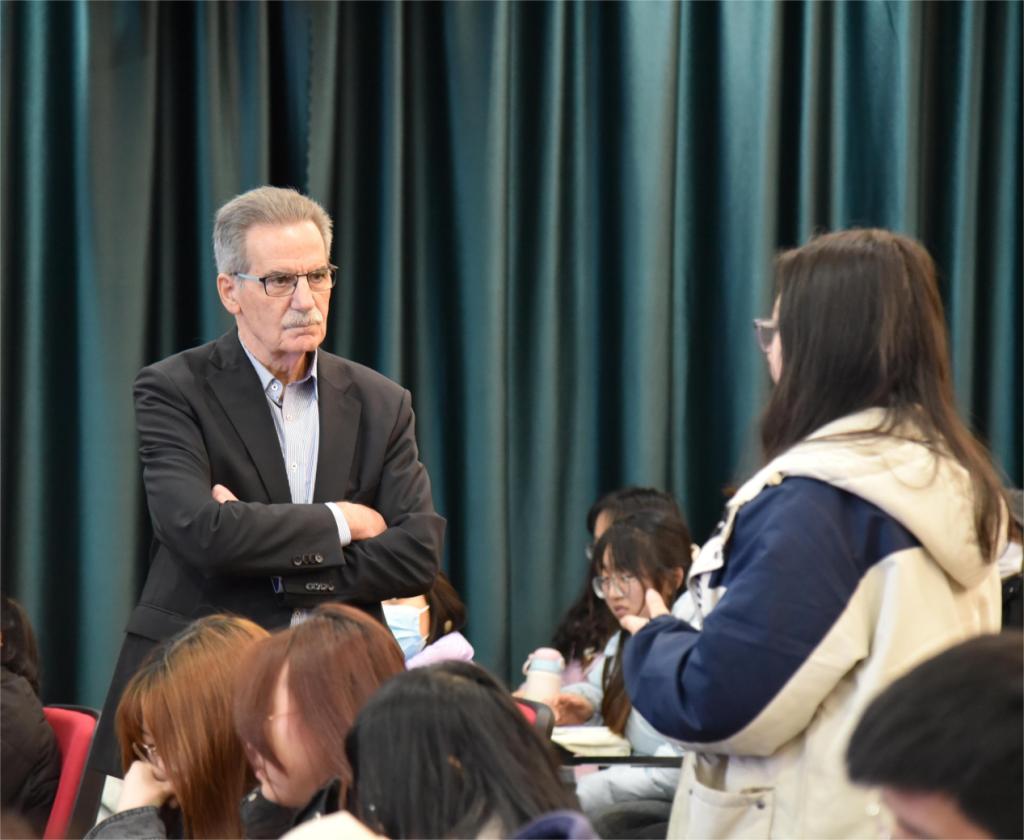 报告会上,霍农院士以17世纪至19世纪的关键时刻在欧美国家翻译并出版的孔子著作为例,指出孔子的思想丰富了欧洲思想家的知识,并产生了一种跨文化解释学的形式,孔子思想对人的道德行为具有很重要的影响,是中国文明的重要代表。霍农教授的报告生动形象、内涵丰富,并热情地与师生们互动交流,为我们更好地弘扬中华优秀传统文化、培育践行君子人格提供了国际视野。