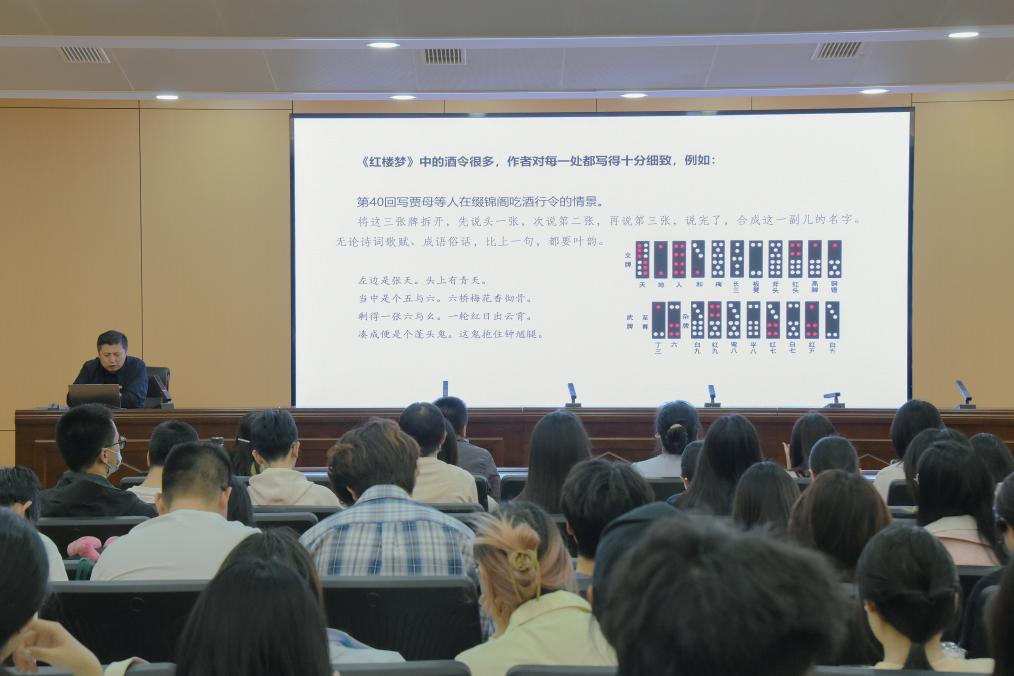 樊庆彦教授从文化研究的视角切入,阐释了游戏这一文化现象具有重要的文化意蕴。他聚焦于经典文学作品《红楼梦》的文本内容,借助深厚的文学功底和丰富的红学研究经验,为在座师生详细解读了书中各种形式的文字游戏,如饮酒行令、观灯猜谜、题咏联句等。樊庆彦教授特别强调,《红楼梦》中的这些文字游戏,大都与小说的主题思想、故事情节、人物性格命运紧密相关,同全书所写的世族之家的盛衰发展相一致,融入了作者对人生对社会的深刻思考,在似乎是不经意的简单描写之间,贯穿着十分深邃的思想内涵和情感寓意,成为小说表现的一种独特手段。
