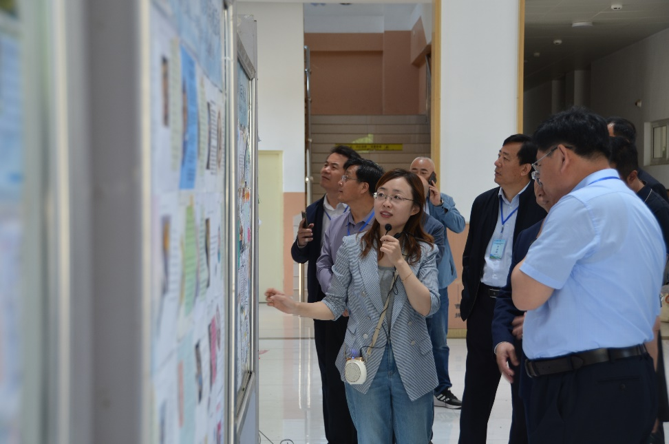 在燕山中学,副校长秦萍、教师发展中心主任张婷婷陪同滕州研修班一行开展校园参访活动,观摩了学生项目化学习的成果展示以及校园文化建设情况。秦萍副校长以《锚定目标,久久为功——建设高品质燕山中学》为题,从学校管理层面介绍了办学理念和育人措施,获得研修成员的高度认可和赞赏。